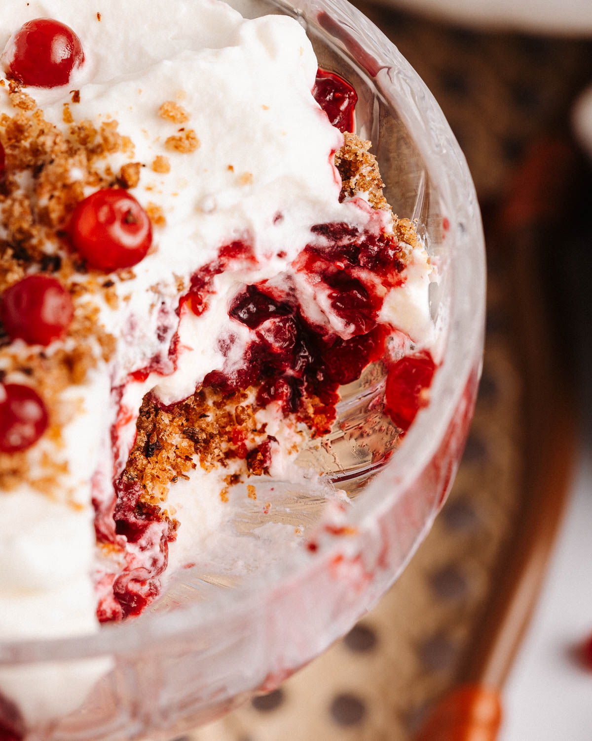 If you've never had a rye bread trifle before, this is the one to try first. The contrast of toasted rye cubes, whipped cream, and that tart-sweet cranberry raspberry sauce creates layers that are creamy, jammy, and just a little nutty. I especially love making this with sugar-free jam because it keeps the berry flavor bright without overwhelming sweetness. It's simple, layered, and perfect when you want a lighter dessert that still feels indulgent.